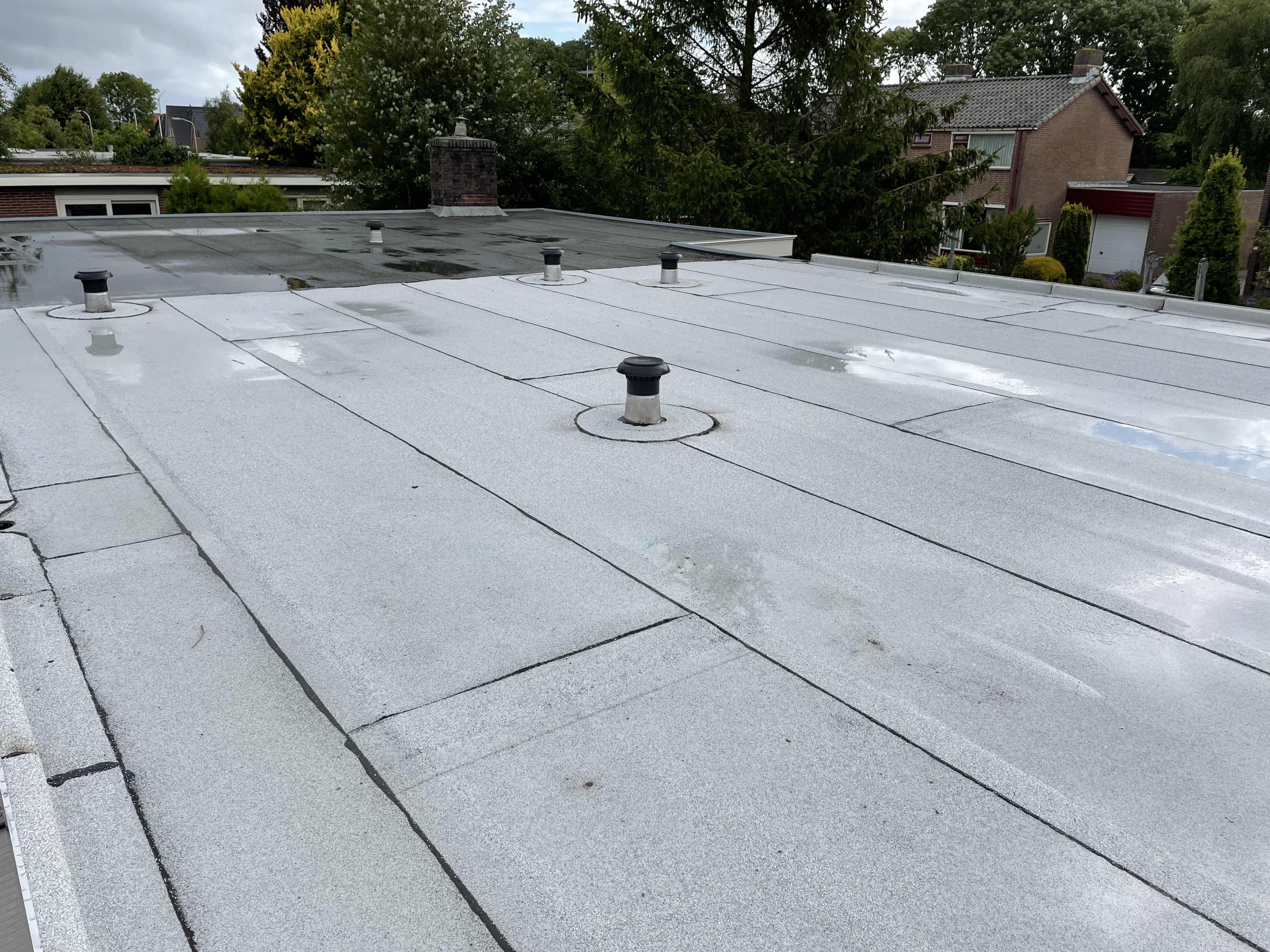 Een plat dak heeft meer onderhoud nodig dan een schuin dak. Een plat dak gaat over het algemeen +20 jaar mee maar of de 20 jaar gehaald wordt is afhankelijk van een aantal factoren. Wordt het dak schoon gehouden, is er genoeg afschot of blijft er water op staan, ligt er grind op en vooral heeft de dakdekker kwalitatief goede materialen gebruikt en vakkundig gewerkt. Atelia werkt voornamelijk met bitumineuze dakmaterialen (dakleer). Dit is goed te onderhouden en makkelijk te repareren indien nodig.