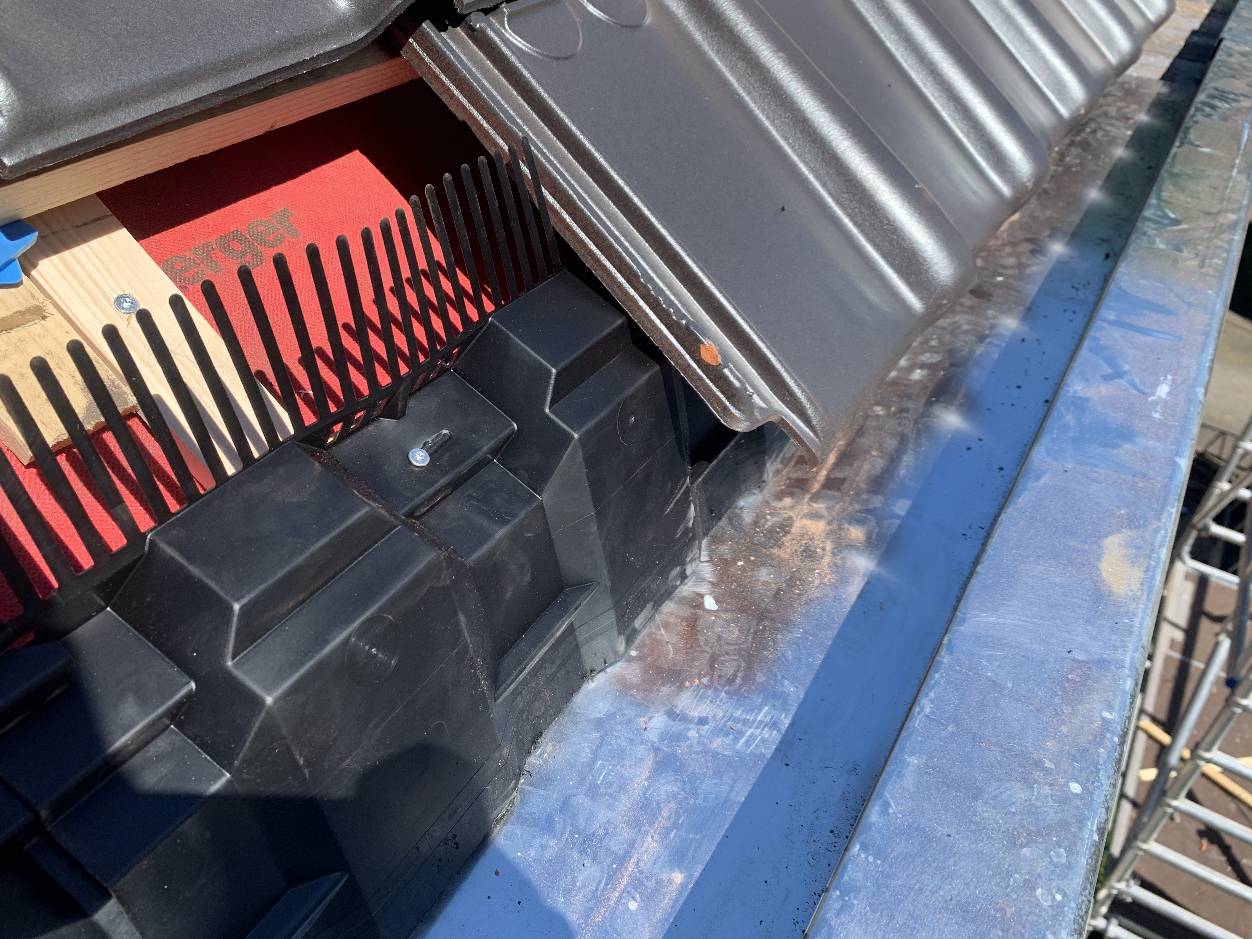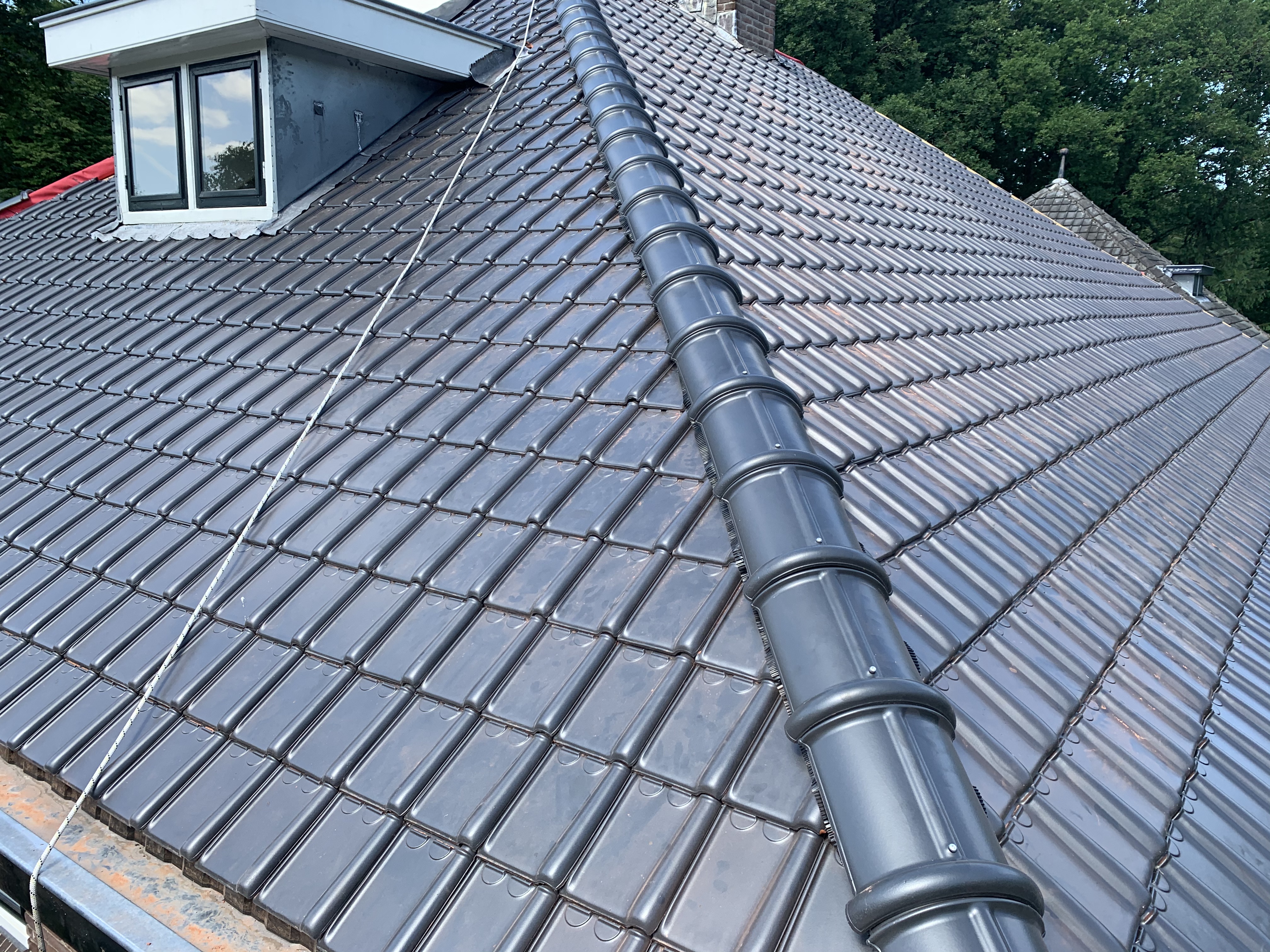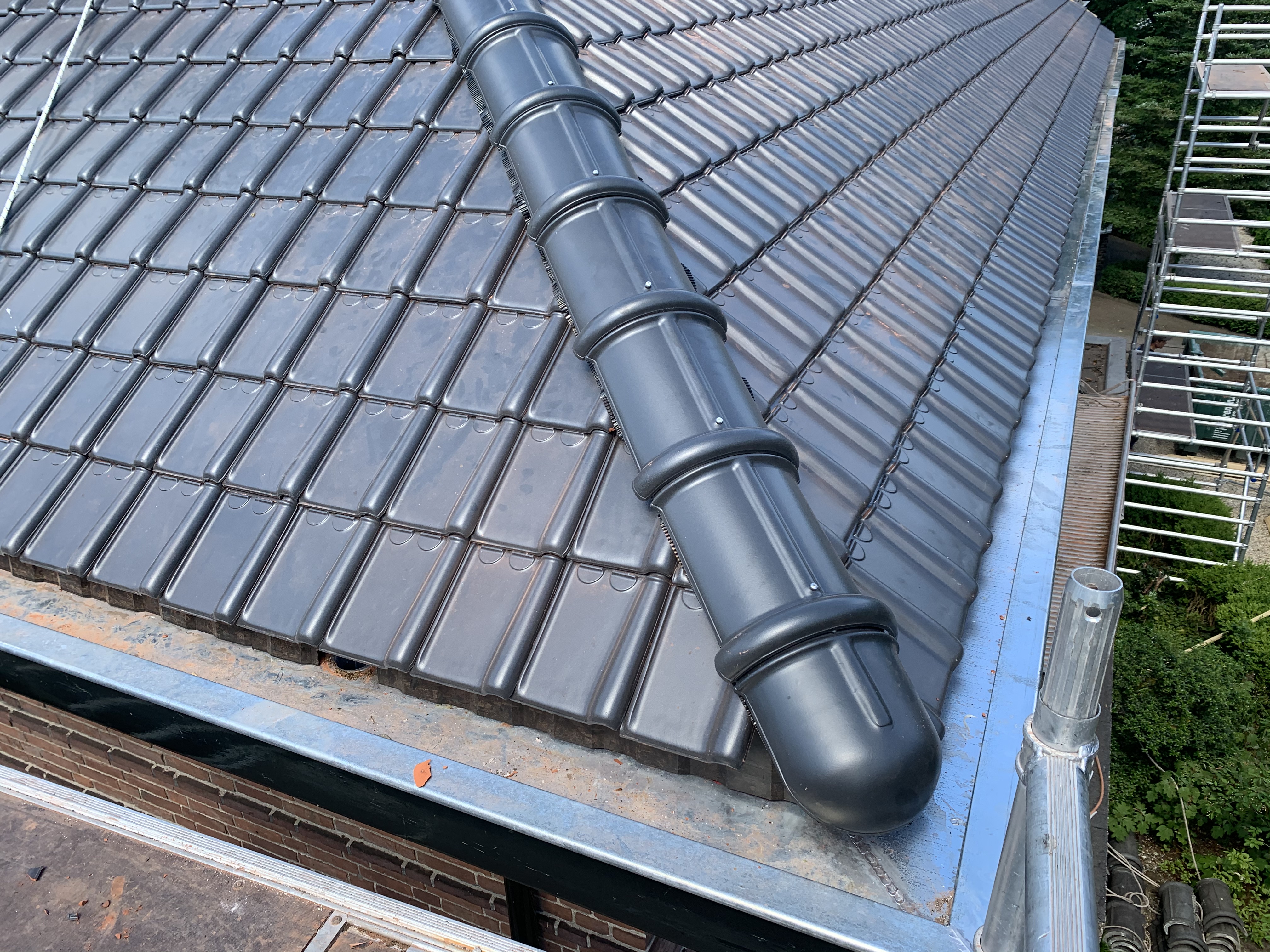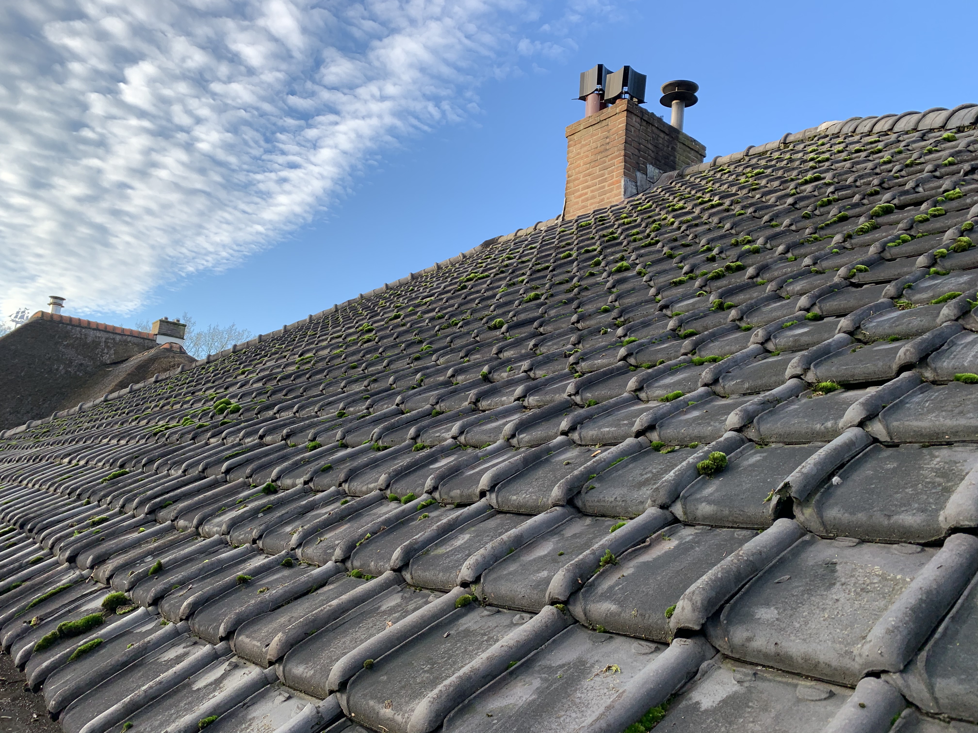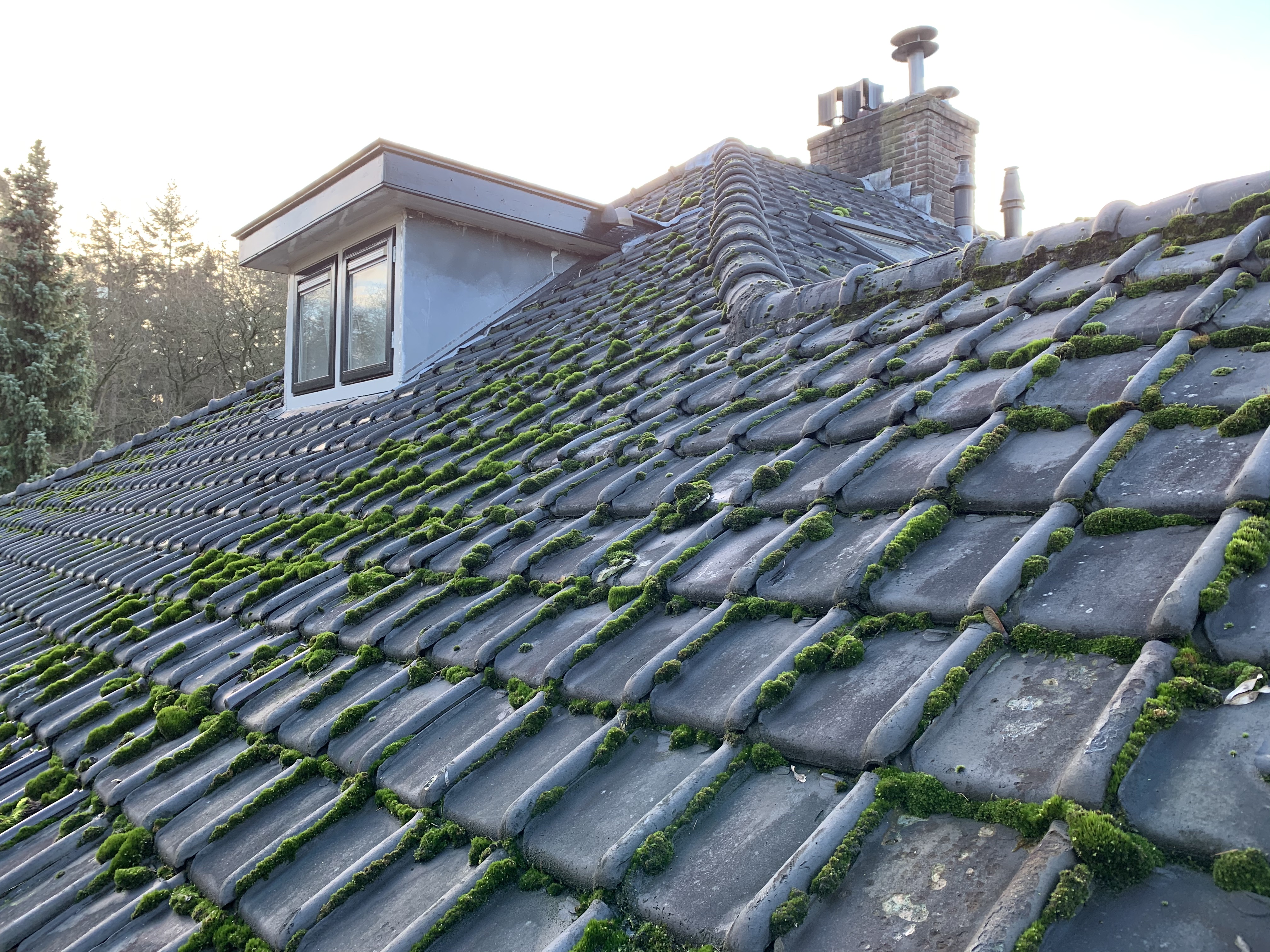 We hebben alle dakpannen, panlatten en tengels verwijderd. Waar nodig is het dakbeschot gerepareerd. Rondom zijn er nieuwe zinken dakgoten geplaatst alsook dampopen dakfolie.