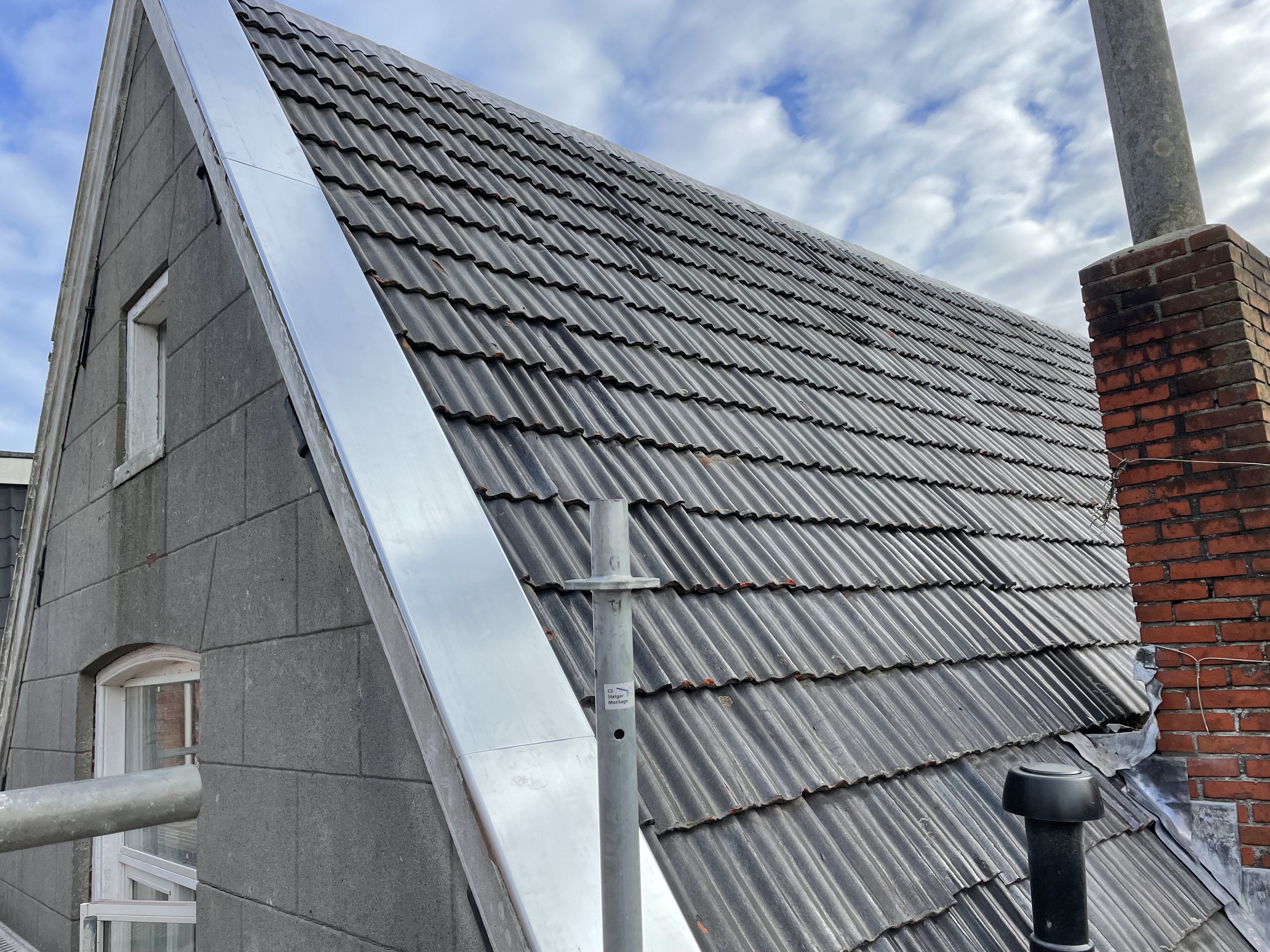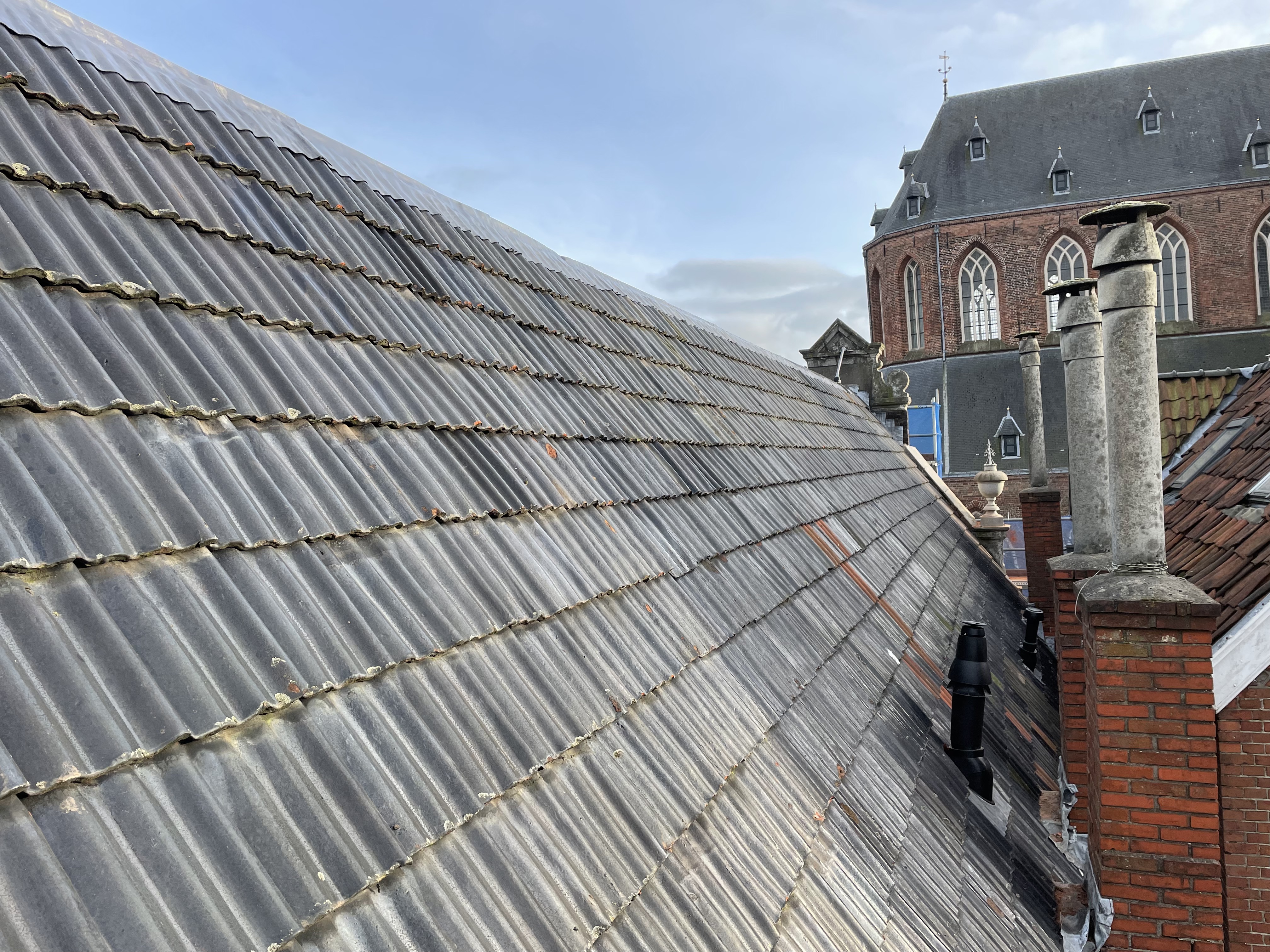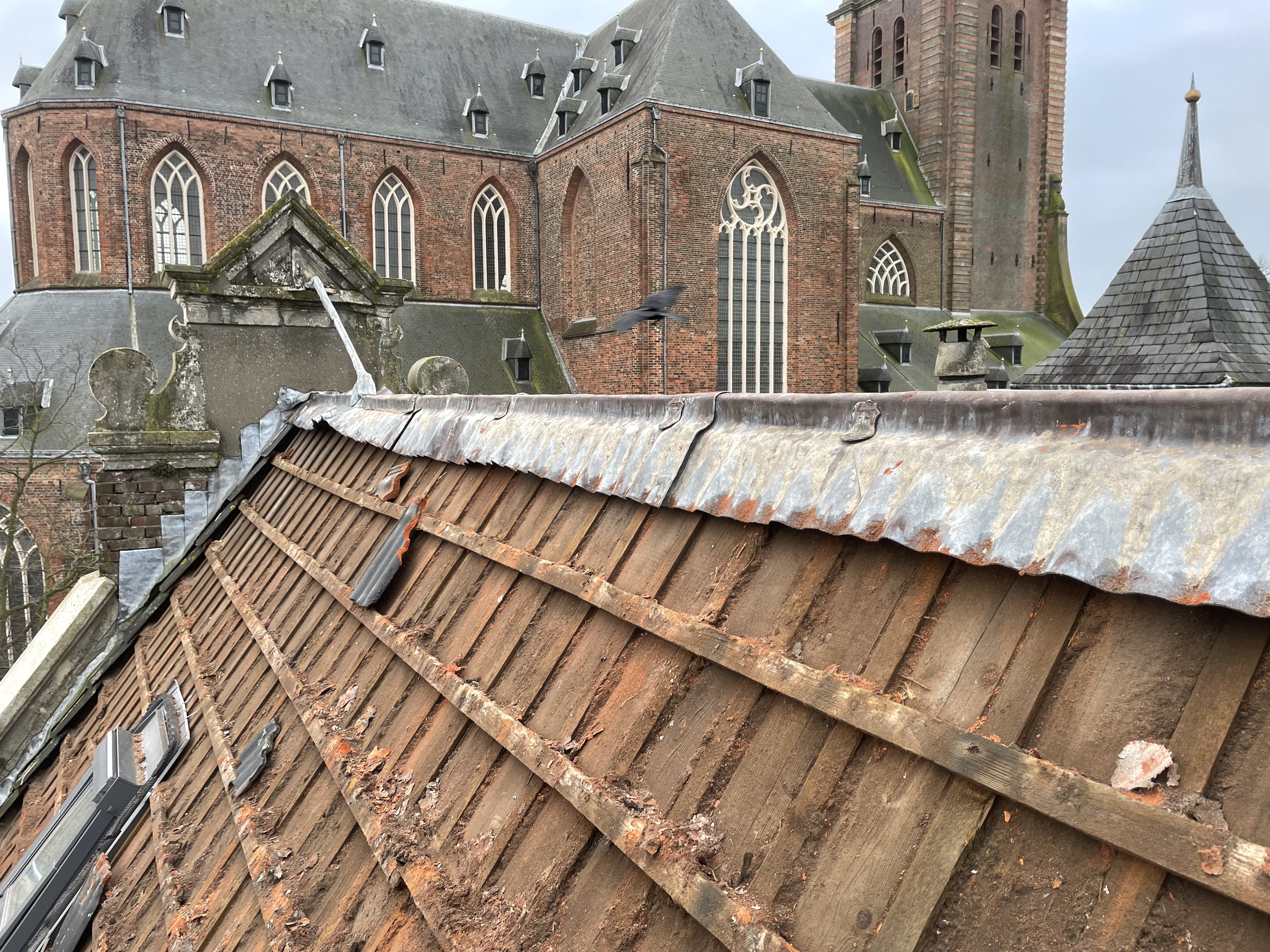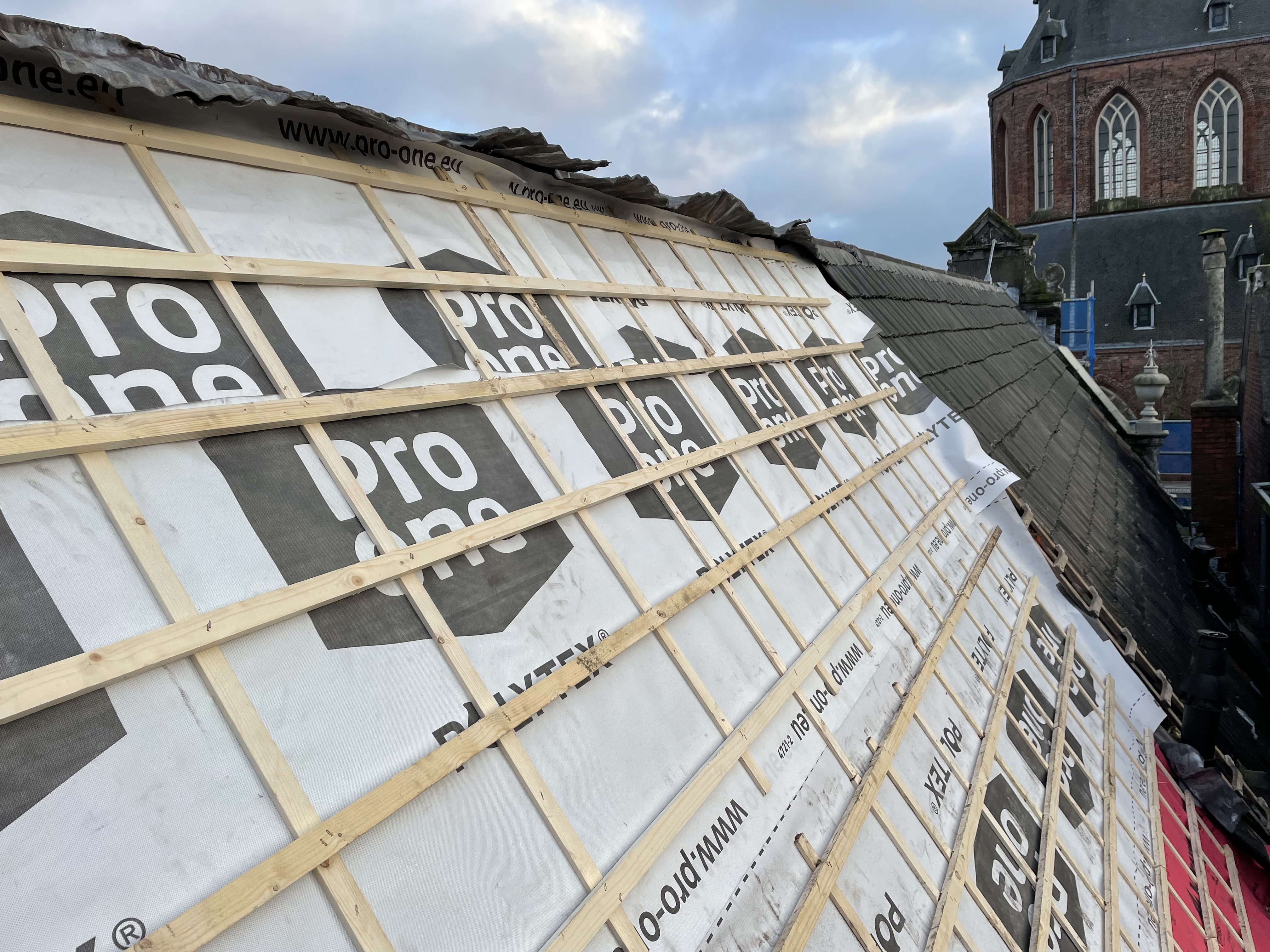 Alle dakpannen zijn verwijderd en ter plekke gesorteerd. Vervolgens is het dak voorzien van een dampopenfolie en zijn er nieuwe tengels en panlatten geplaatst.