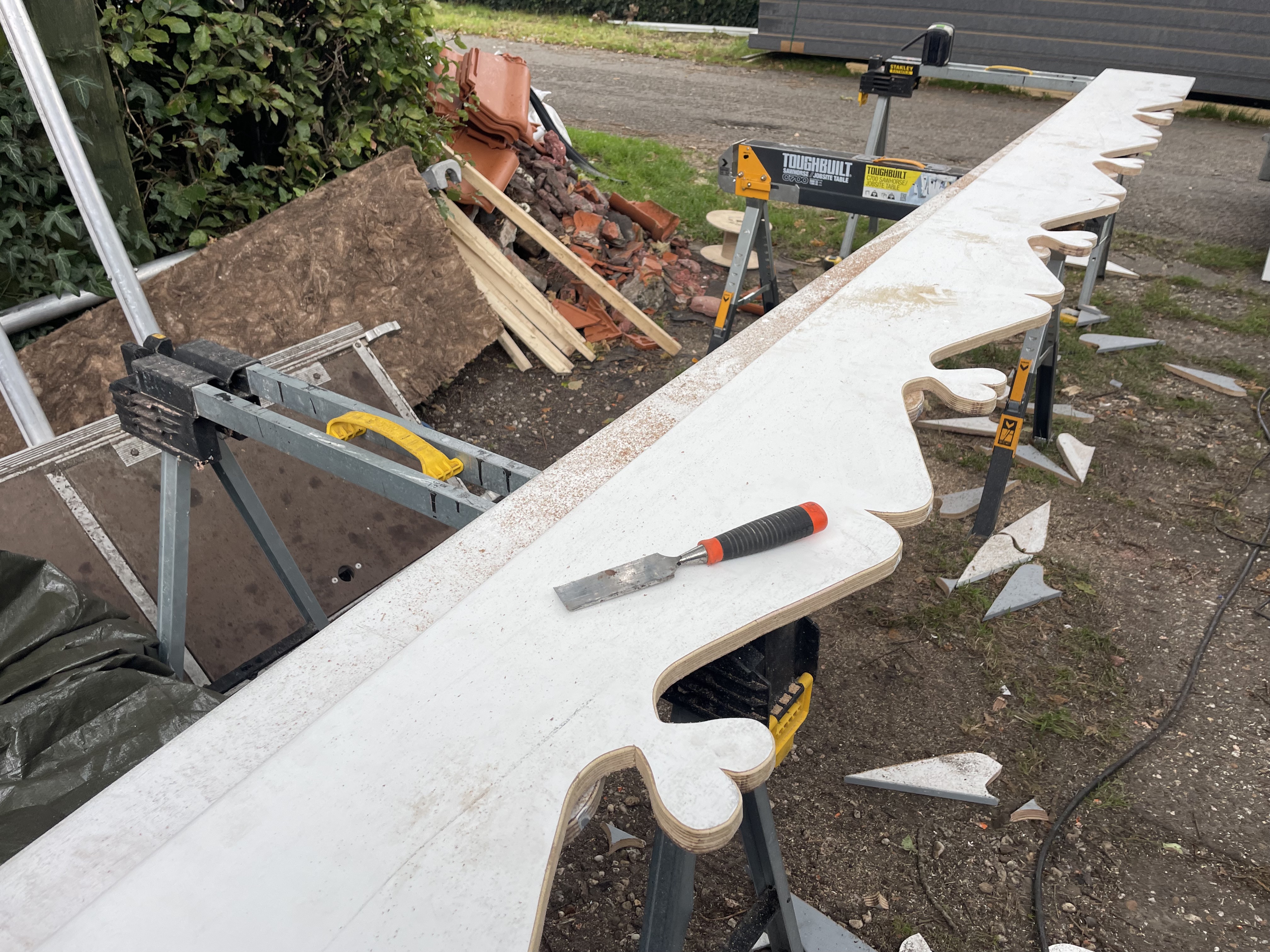 Alles is verwijderd tot op de sporen. Een aantal sporen waren aangetast door houtworm. Dat is eerst behandeld en de sporen zijn verstevigd. Ook waren sommige sporen zover doorgebogen (meer dan 10 cm) dat we daar nieuwe sporen naast gezet hebben.